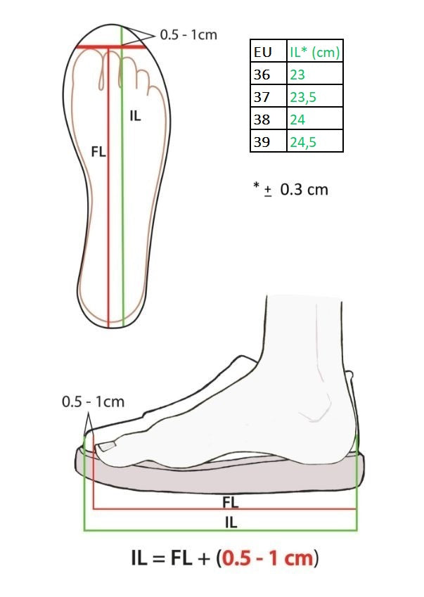 The thickness of sole at the toe tip ~ 2,5 cm